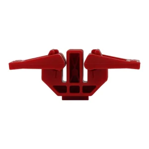 Nehmen Sie zunächst 2 Duplexklemmen und öffnen Sie jeweils den größeren der beiden Hebel. In die so freigelegte Aussparung legen Sie das Verkehrszeichen ein und schließen die Hebel wieder.