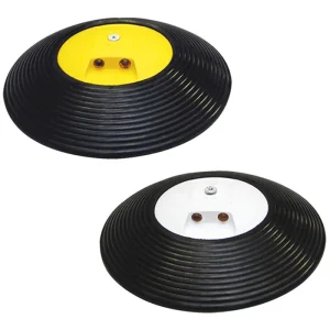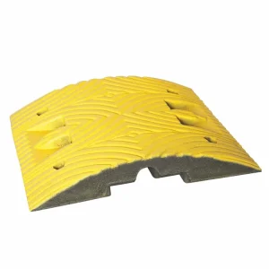 Die Mittelstücke und Abschlusselemente bestehen aus hochwertigem Kautschuk. Das langlebige Material ist robust bei geringem Gewicht, aber auch flexibel. So federt es die beim Überfahren einwirkenden Kräfte optimal ab. Daher ist die Kautschuk Bodenschwelle bestens für gelegentlichen Schwerlastverkehr (LKWs z.B. mit einer Achslast von 12 t) geeignet. Die gerillte Oberfläche der Temposchwelle sorgt für Rutschfestigkeit bei Nässe.