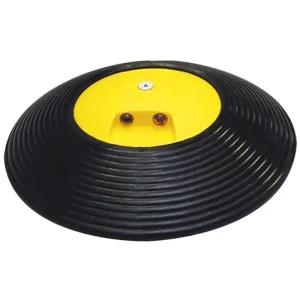 Die Moravia Fahrbahnschwelle TOPSTOP-20 aus Kautschuk für 10-20 km/h zur Verkehrsberuhigung eignet sich auch für Bereiche mit Schwerlastverkehr.