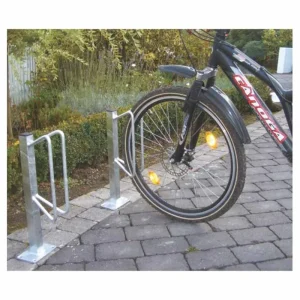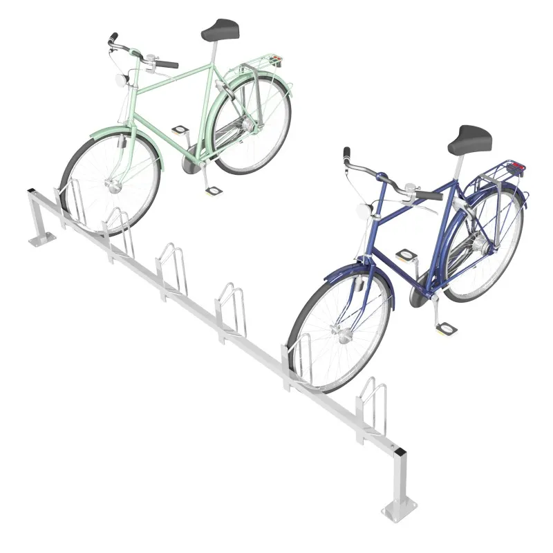 Der Mehrfach Fahrradständer besteht aus einem 3000 mm breiten Vierkant-Trägerrohr mit 6 angeschweißten Haltebügeln, gefertigt aus feuerverzinktem Stahl. Durch die Drehung des Trägerrohrs können Sie die Ausrichtung der schrägen Haltebügel nach links oder rechts wählen. Die freistehende Ausführung hat zwei anschraubbare Vierkant-Standrohre, entweder zum Einbetonieren oder mit Fußplatte zum Aufdübeln. Der Schake Reihenparker zeichnet sich durch seine hohe Witterungsbeständigkeit und Stabilität aus.