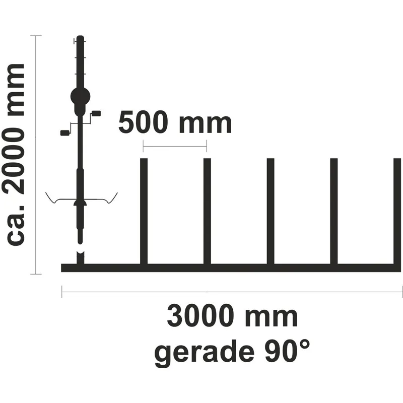 Gesamtbreite mit Trägerpfosten: ca. 3100 mm