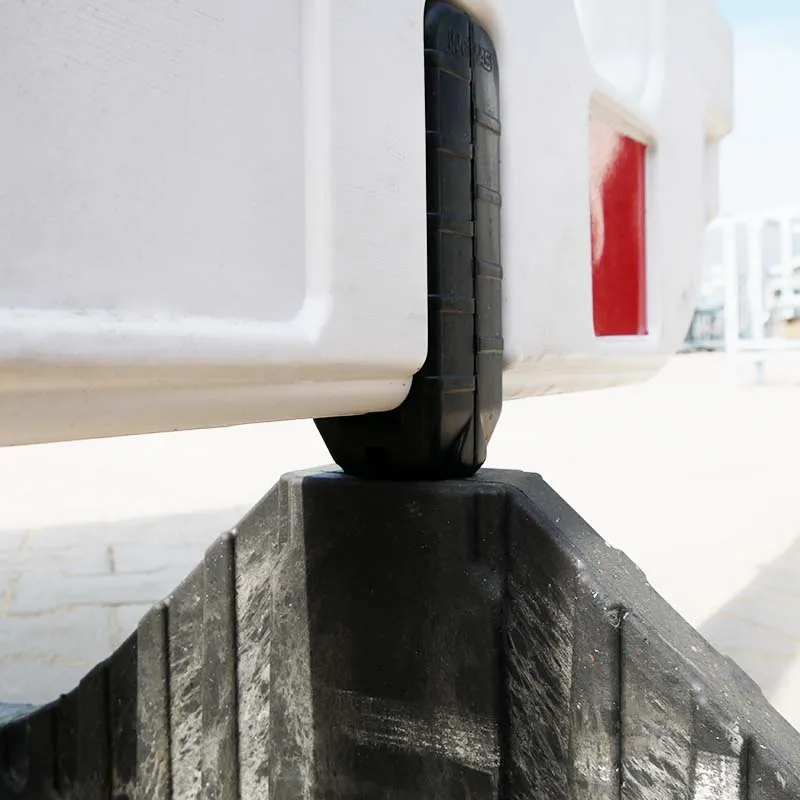 Mit dem Fußplattenadapter Ø 42 mm für Absperr- und Eventgitter WEMAS kann das mobile Absperrgitter, das standardmäßig mit zwei drehbaren Füßen ausgestattet ist, auch mit zwei Fußplatten verwendet werden. Einfach die Drehfüße abmontieren und die Austauschadapter einsetzen.
