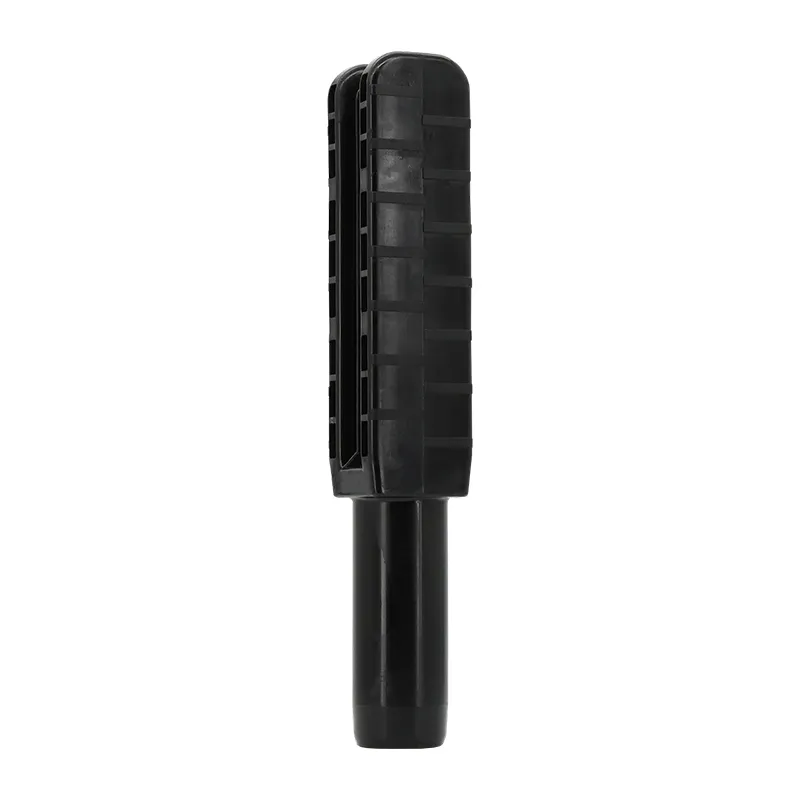 Der Fußplatteneinsatz besteht aus bruchsicherem Kunststoff und hat eine Länge von ca. 325 mm. Das untere Rundrohr ist für eine Aufnahme von ca. Ø 42 mm ausgelegt.