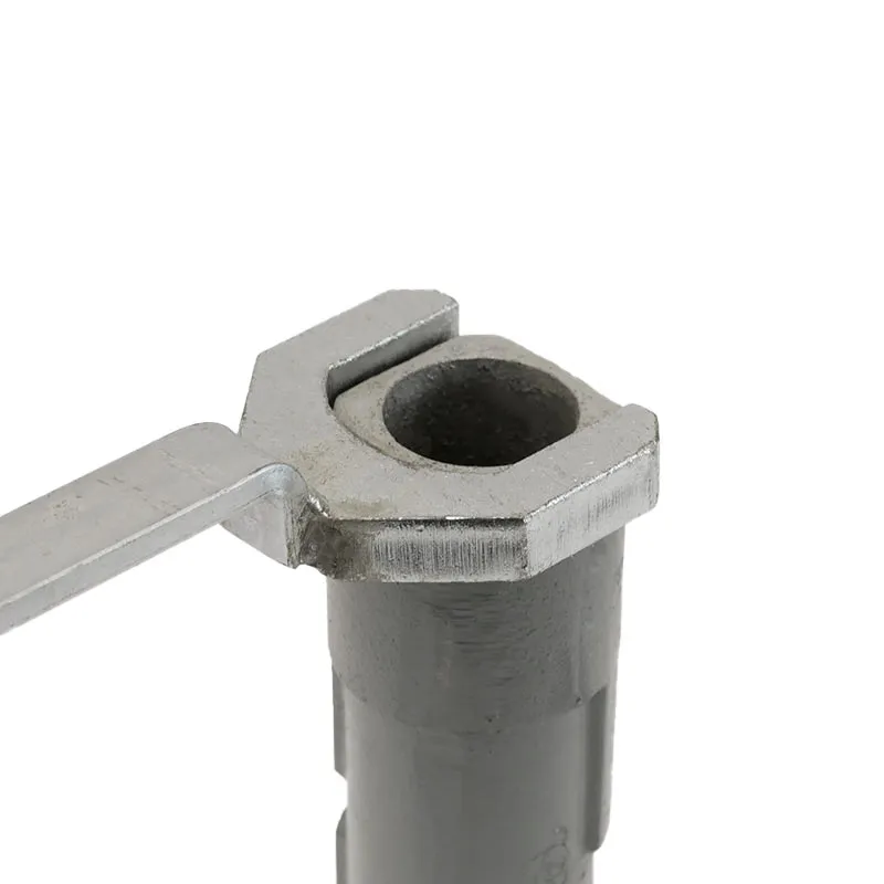 Am unteren Ende des Griffs ist ein Vierkantstutzen angeschweißt, mit dem Sie Blindstopfen in ungenutzte Bodenhülsen eindrehen.