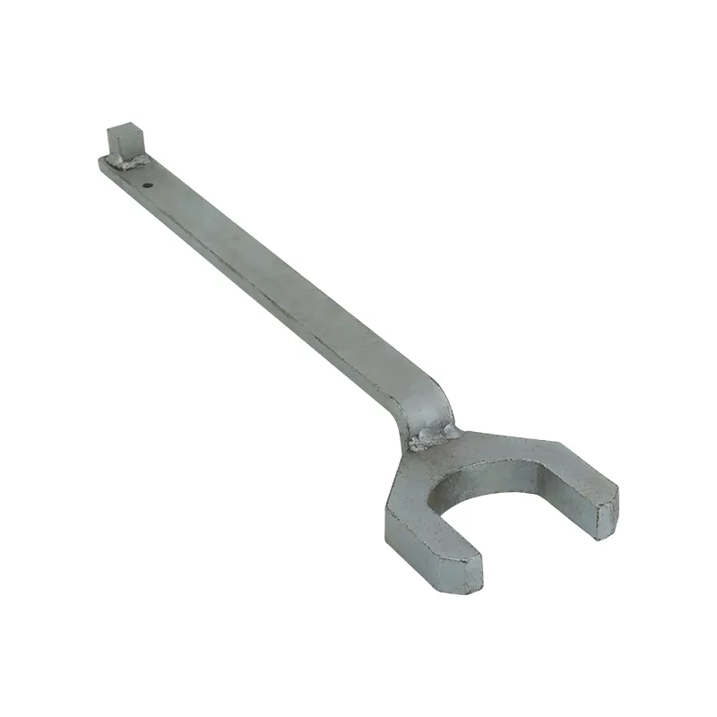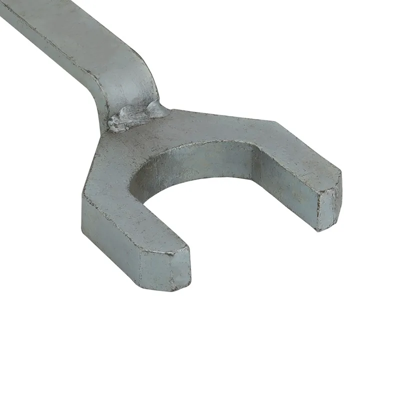 Mit dem Gabelschlüssel für Bodenhülsen Ø 48 mm aus Grauguss öffnen und schließen Sie Gewinderinge von Bodenhülsen für Rohrpfosten.