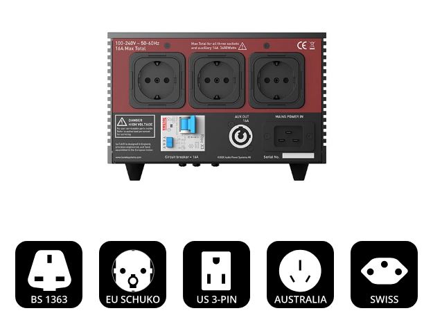 Das V5-Design verfügt über ein RCBO-Sicherungssystem mit 16 A für die drei Hochstrom-Ausgangssteckdosen, welche 3.680 W bei 230 V oder 1.840 W bei 115 V liefern.