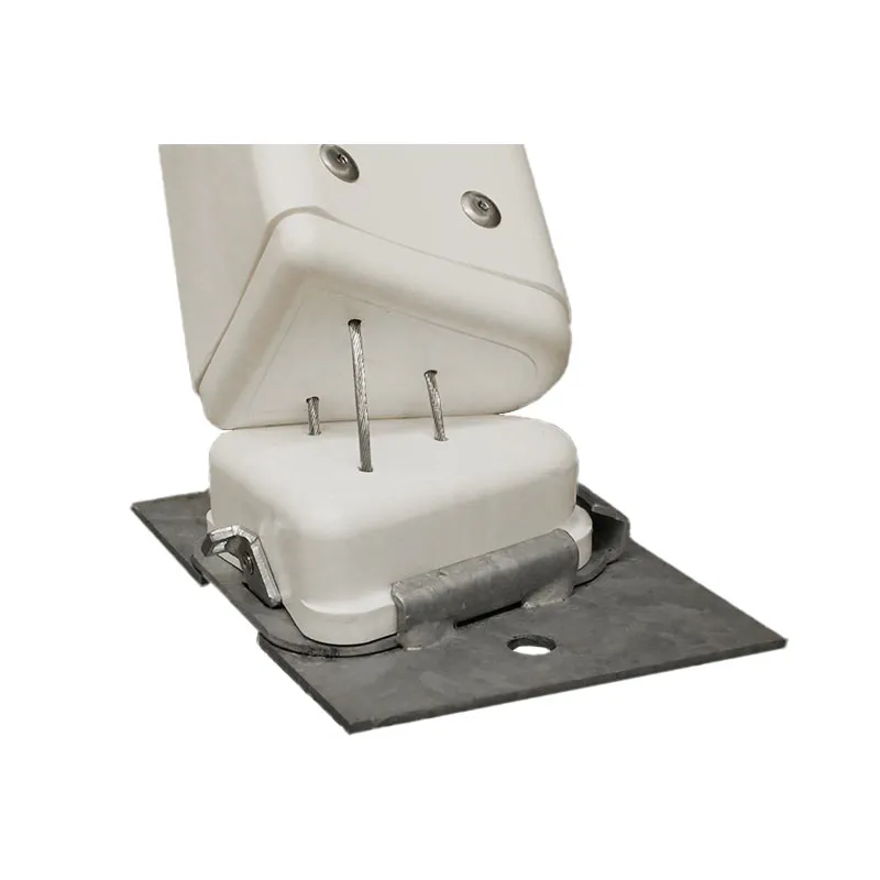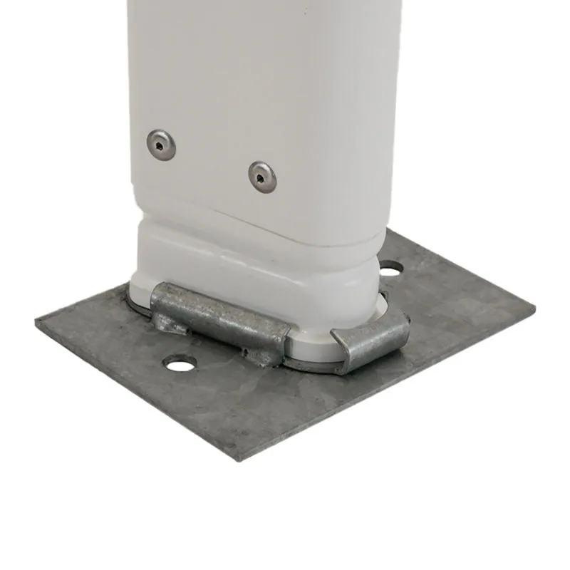 Auf der Montageplatte ist eine Halterung zum Aufschieben des Fußteils der Steh-Auf-Leitpfosten und Flex-Poller aufgeschweißt.