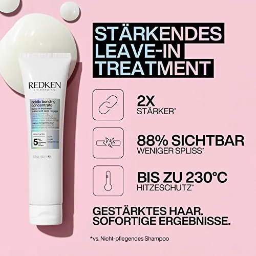 - Schluss mit geschädigtem Haar! Die Acidic Bonding Concentrate Serie von Redken repariert und pflegt geschädigtes Haar intensiv dank der konzentrierten All-In-One Formel. Dabei sorgen die ultrareichhaltigen und luxuriösen Artikel, die sich auch ausgezeichnet für behandeltes Haar eignen, für eine intensive Pflege und für einen zuverlässigen Schutz vor Farbverlust.