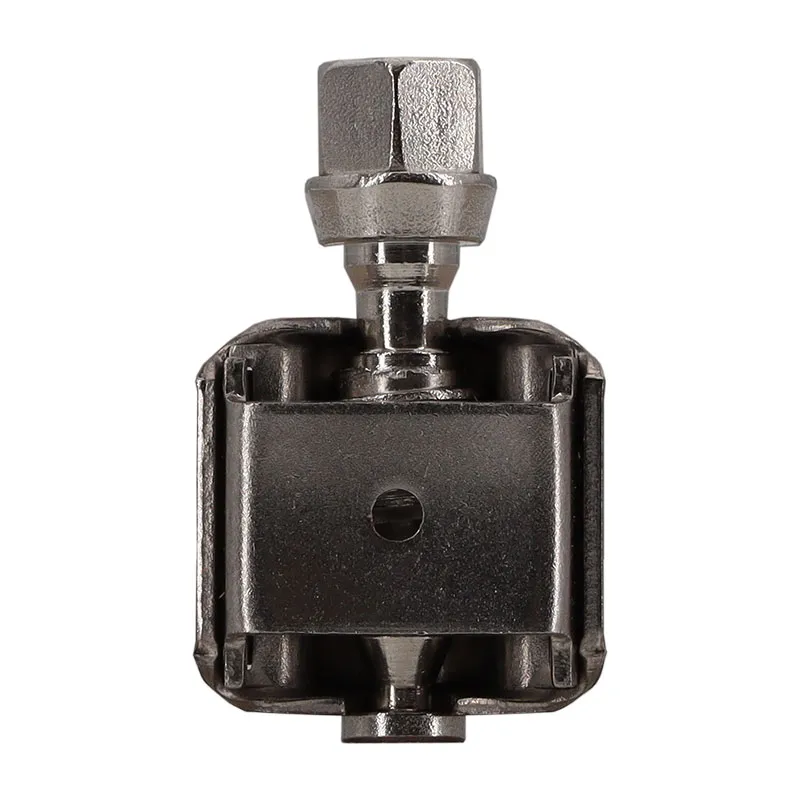 Im Schraubgehäuse mit Schnellverschluss ist eine Drehgewindeschraube mit Schlitz- und Sechskantkopf M5 eingebaut. Das Drehen der Schraube im Spannschloss zieht das Spannband ein und fixiert es.