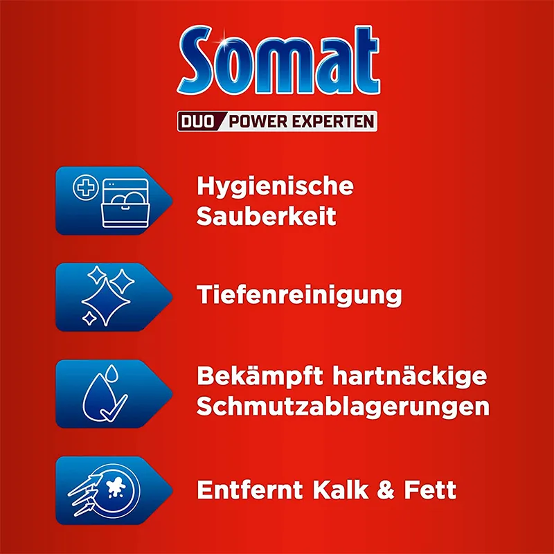 In Kombination mit Somat Klarspüler verlängern Sie so die Lebensdauer und Leistung Ihrer Spülmaschine.