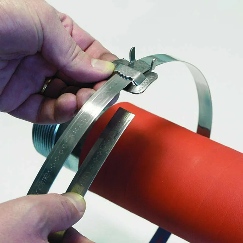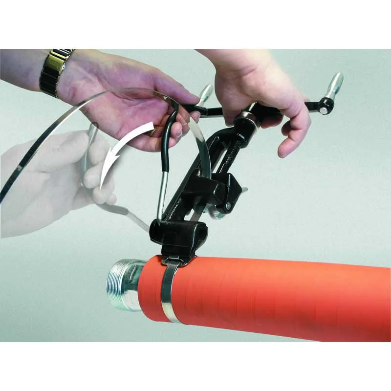 Mit dem Spannwerkzeug von Bandimex lassen sich Edelstahlbänder und Edelstahlschlaufen als Spann- und Befestigungsband schnell und dauerhaft verschließen.