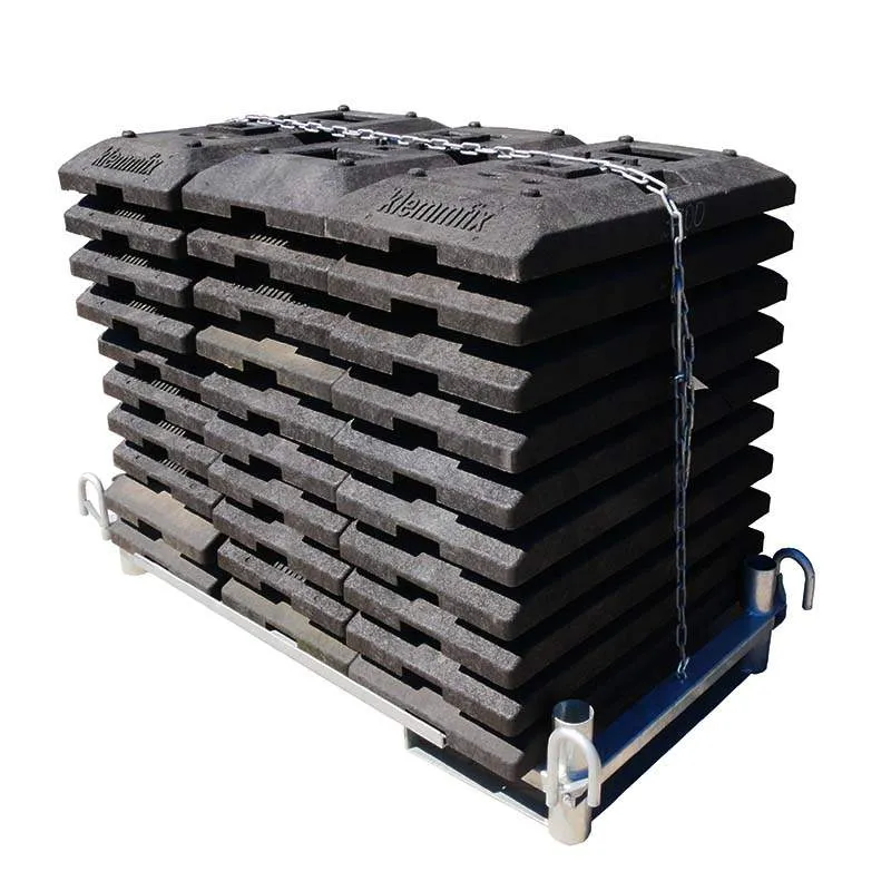 Die Stapelpalette kann bis zu 30 Fußplatten in Stapeln von jeweils 10 Stück aufnehmen. Bitte beachten Sie, dass die transportfähige Menge je nach Modell der Fußplatten variieren kann.