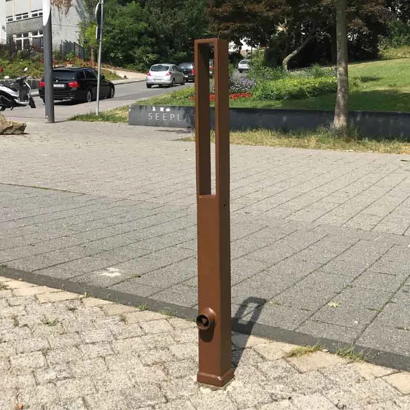 Die offene und kantige Form vom eckigen Stilpoller Serie 40731 aus Stahlrohr 70 x 70 mm mit Flachstahl ist besonders schön. Bei dem Stilpoller 40731 ist der untere Teil aus einem Vierkantrohr 70 x 70 mm hergestellt. Oben aufgesetzt wird eine Bügelkonstruktion aus Flachstahl. Highlight: Der Durchblick durch den Stilpoller.
