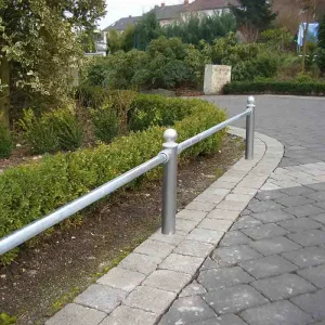 Zur dauerhaften Befestigung bieten wir den Stilpoller Serie 4084 aus Stahlrundrohr Ø 89 mm zum Einbetonieren in den Boden an. Alternativ ist der Stilpfosten herausnehmbar mit Dreikantverschluss nach DIN 3223 und Bodenhülse erhältlich. Einen Dreikantschlüssel M12 zum Entriegeln bitte mitbestellen. Zum Einhängen von Absperrketten liefern wir die seitlich angeschweißten Kettenösen als Zubehör.