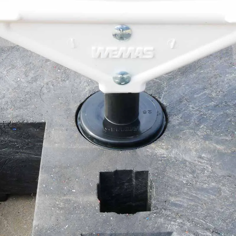 Die Wemas Pfeilbake Typ D wird mittels Drehadapter mit der passenden Sicherheitsfußplatte MB-TL 92 verbunden: Einstecken, um 90 Grad bis zum Einrasten drehen, fertig. Der Drehadapter hat einen Schutzrand, der verhindert, dass Schmutz und Feuchtigkeit in den Rastmechanismus eindringen. Sollte dies nach langem Gebrauch doch einmal der Fall sein oder der Drehadapter durch einen Crash beschädigt werden, lässt er sich austauschen. Damit verlängert sich die Lebensdauer der Leitbake wesentlich.