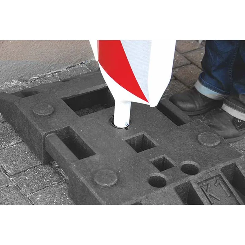 Somit ist sie perfekt um schnell, sicher und vorschriftsmäßig Leitbaken und Absperrschrankengitter auf Ihrer Autobahnbaustelle aufzustellen. Aber auch für die mobile Aufstellung Ihrer Schaftrohre, Verkehrszeichen, Schrankenzäune und Bauzäune eignet sich die TL-Fußplatte K35.