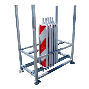 Das Transport- und Lagergestell von Schake für 20 Absperrschrankengitter ist für die Lagerung und den sicheren Transport von Schrankenzäunen konstruiert.