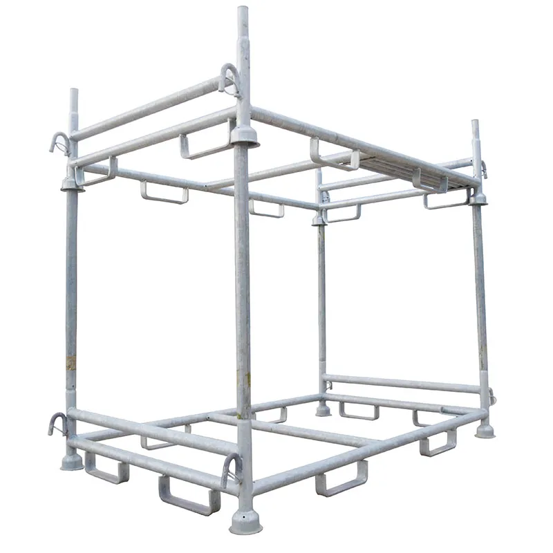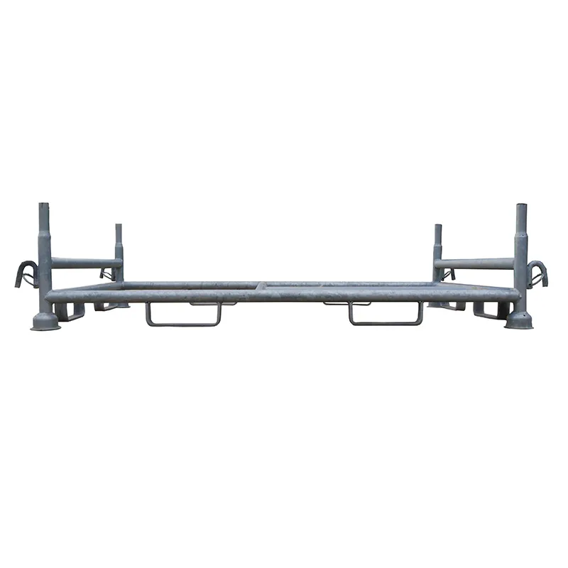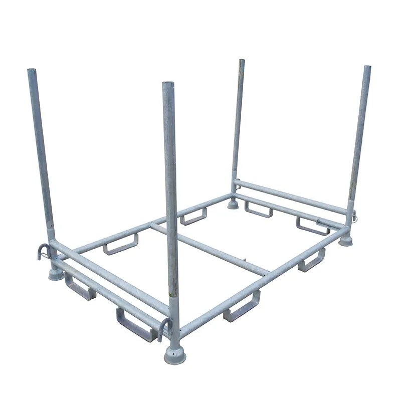 Zum Stapeln von Gestellen garantieren die vier angeschweißten Tulpenfüße einen sicheren Halt auf den Holmen. Im Rahmengestell sorgt eine zusätzliche Querstrebe mittig für die passende Stabilität. Die Lagergestelle sind 4-fach stapelbar.