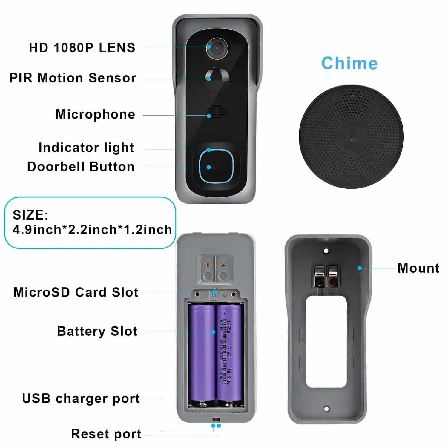 Ausgestattet mit HD 166° Weitwinkelobjektiv, Bietet Smart-cam Türklingelkamera eine breitere Perspektive für die Anzeige, sehen Sie Ihre Besucher leicht auf APP, wenn jemand vor Ihrer Veranda steht.