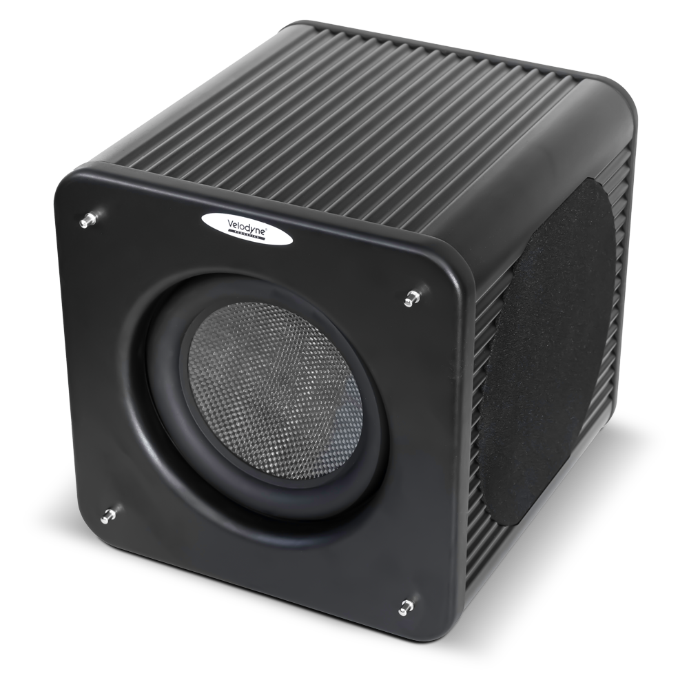 Mit den Maßen 22,9 x 22,9 x 24,4 cm und einem 6,5 Zoll Treiber ist der Subwoofer einer der kleinsten von Velodyne Acoustics – mit präzisem Bass kommt er allerdings ganz groß raus.