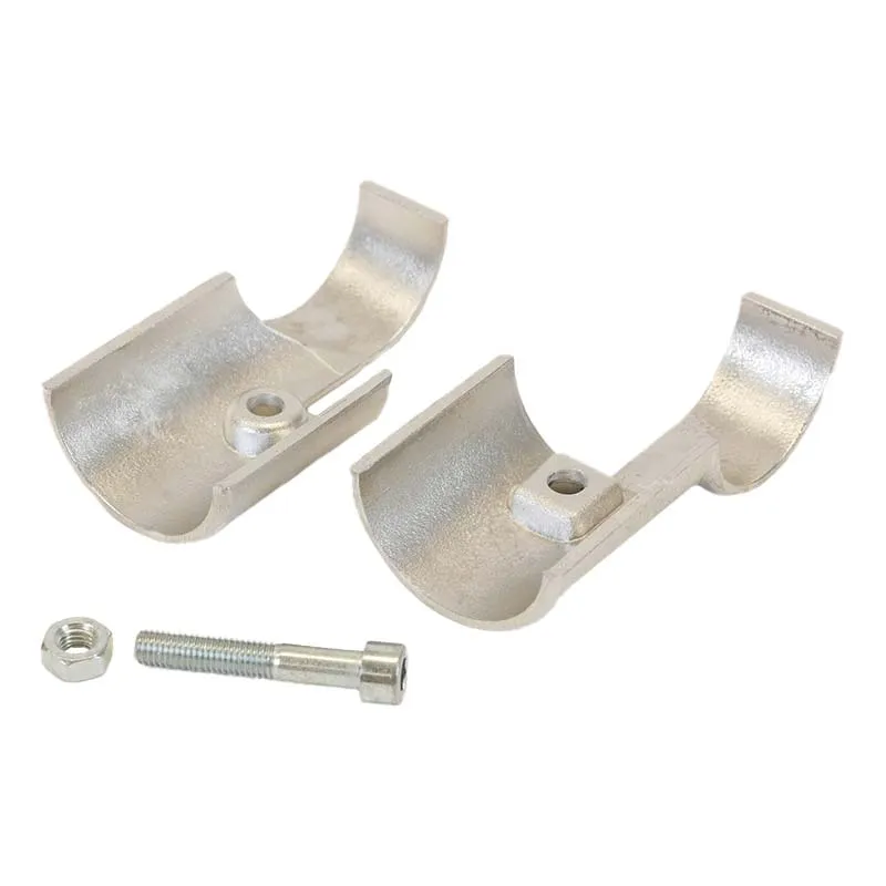 Mit dem Eckstück können Sie zwei Rohre verbinden. So lassen sich mit dem Schutzgeländer auch leichte Kurven oder Einbuchtungen erstellen. Das Eckstück besteht auch wie das Kreuzstück aus zwei Halbschalen, die jedoch nur mit einer Schraube und Mutter zusammengehalten werden.