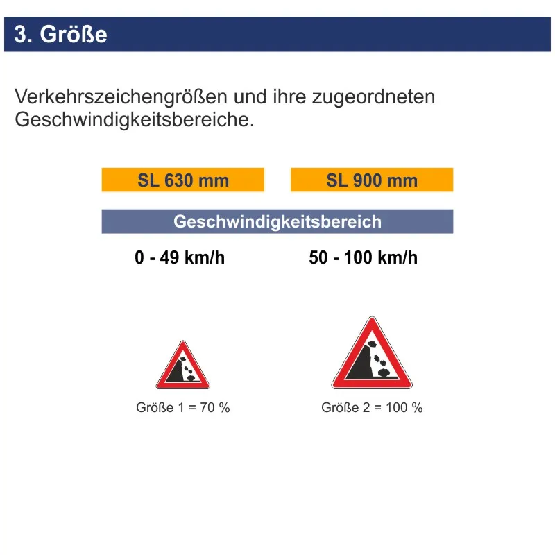 VZ 101-25 Steinschlag, Aufstellung links im Überblick