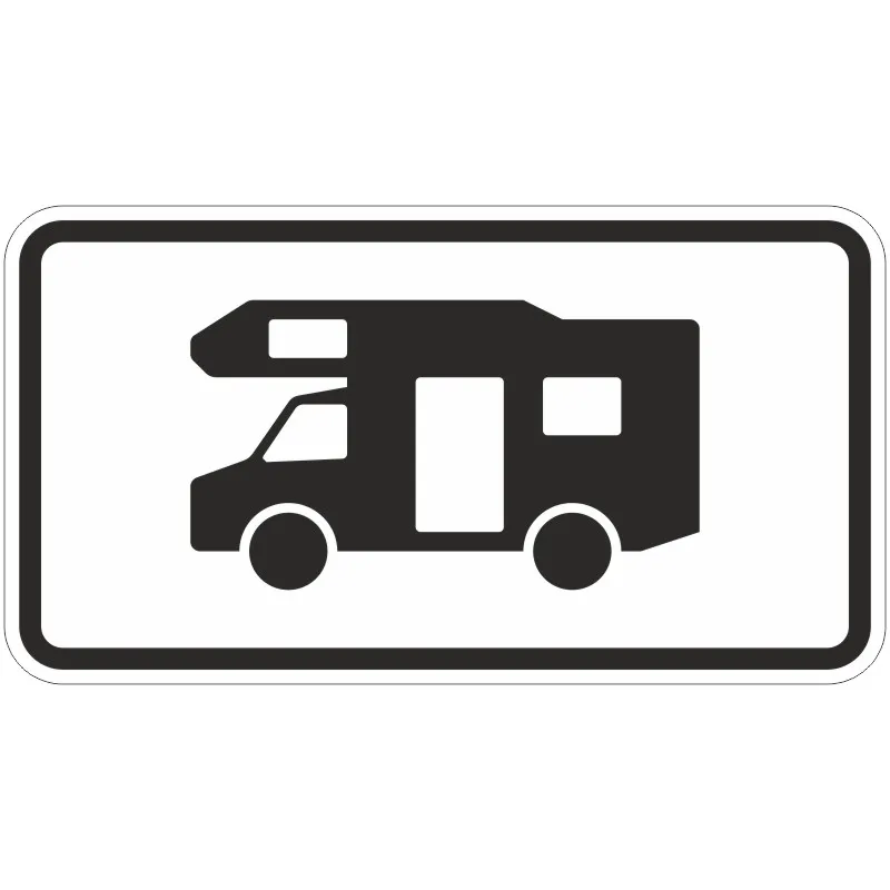 Das Verkehrszeichen 1010-67 „Wohnmobile“ ist ein rechteckiges, schwarz umrandetes Zusatzschild mit dem schwarzen Sinnbild eines Wohnmobils auf weißem Grund.
