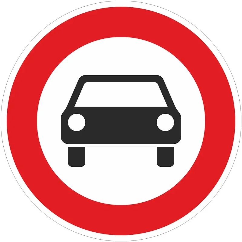 Das Verkehrszeichen 251 „Verbot für Kraftwagen“ in runder Form (Ronde) hat einen roten Rand und zeigt in der Mitte das Symbol eines Kraftfahrzeugs in Schwarz auf weißem Grund.