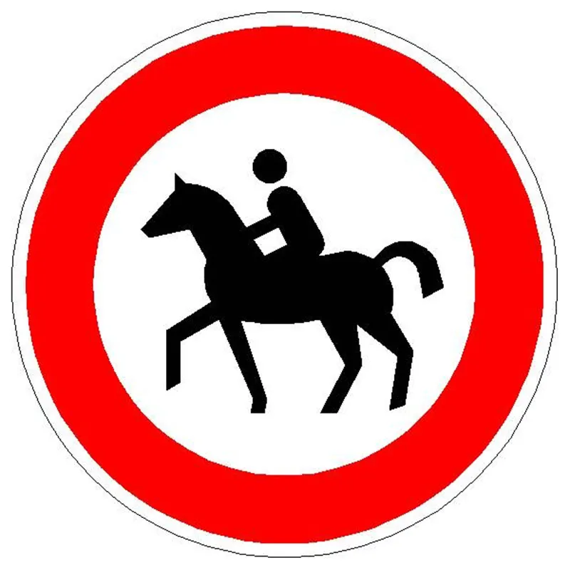 Bedeutung: Das Verkehrszeichen 257-51 schreibt ein Reitverbot vor. Das Führen von Pferden ist erlaubt.