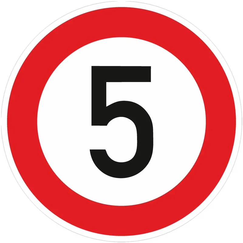 Das Verkehrszeichen 274-5 „Zulässige Höchstgeschwindigkeit 5 km/h“ ist ein Verkehrsschild in runder Form (Ronde) mit weißem Grund, rotem Rand und einer schwarzen Fünf in der Mitte, die für das maximal erlaubte Tempo steht.