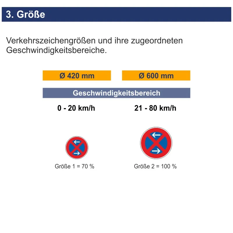 Einsatz: VZ 283-30 StVO wiederholt das Haltverbot innerhalb der Verbotsstrecke, wenn diese schwer zu erkennen ist. Es wird im spitzen Winkel zur Fahrbahn aufgestellt und gilt für die Straßenseite, auf der es steht – hier rechts – bis zur nächsten Kreuzung oder Straßeneinmündung. Es kann auch durch Verkehrszeichen, die eine andere Regelung zum Halten oder Parken vorschreiben, außer Kraft gesetzt werden.