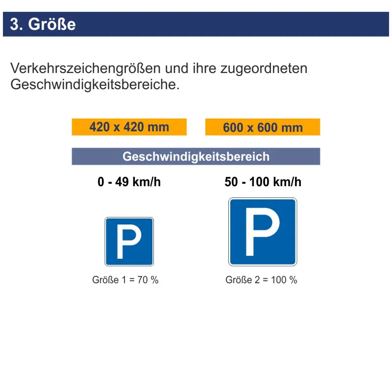 Einsatz: VZ 314 wird dort eingesetzt, wo auf Parkflächen hingewiesen werden soll. Wenn mit diesem Zeichen ein größerer öffentlicher oder privater Parkplatz oder ein Parkhaus gekennzeichnet wird, beispielsweise, weil die Einfahrt nicht eindeutig erkennbar ist, steht es in der Regel unmittelbar an dieser Einfahrt.
