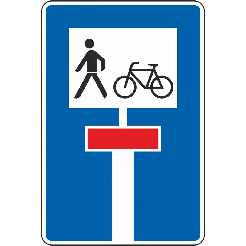 - kennzeichnet eine Sackgasse mit Durchlass nur für Radfahrer und Fußgänger