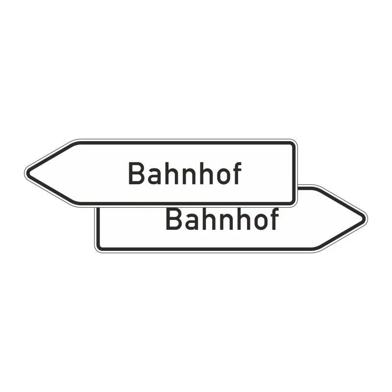 Das Verkehrszeichen 432-40 „Pfeilwegweiser zu Zielen mit erheblicher Verkehrsbedeutung, doppelseitig“ ist ein Wegweiser in Pfeilform mit weißem Grund und schwarzem Rand, der von zwei Seiten lesbar ist. Das Ziel wird in schwarzer Schrift angegeben. Die exakte Ausführung richtet sich nach den RWB (Richtlinien für die wegweisende Beschilderung außerhalb von Autobahnen). Bitte machen Sie Ihre individuellen Angaben zur Schildbeschriftung!