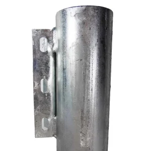 Mit einem Abstand von 500 mm zur Hauswand können Sie Beobachtungsspiegel und Verkehrsschilder mit 76er Schellen an dem senkrechten Rohrstück montieren.